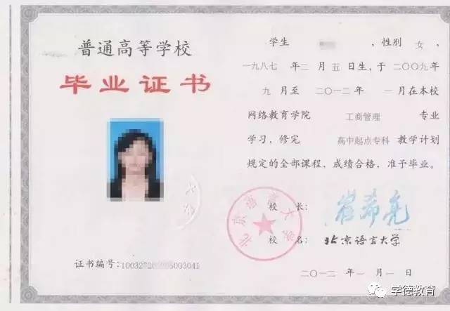 學(xué)歷樣本如下: